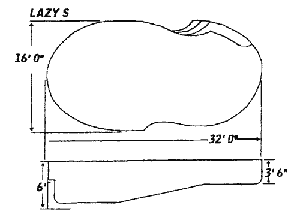 The Lazy S has charm of shape that will dignify any home's backyard. A distinct shape that has entry stairs and bench on the pool side wall so there is lots of pool length to roam and frolic in the all non-diving water depth. A convenience ledge runs completely around the deeper end of the Lazy S. The "little ones" will find this feature just right when catching a breath after hours and hours of fun and merriment in the Model Lazy S. |