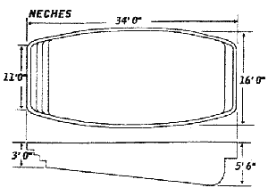 The Model Neches is one of the most popular non-diving pools that Sundown Pools sells and installs. The non-diving depth is ideal for water volleyball and water sport amusements that the whole family can enjoy for years to come. The well proportioned shape of the Neches offers both balance and practical curves and dimensions. The stairs in the Neches are built across the width of the pool on the shallow end, and a ledge or tanning area is built on the deep end of the pool. |