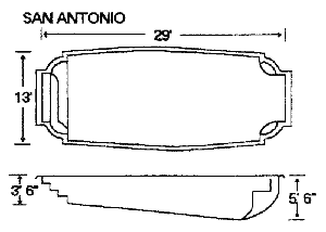 The San Antonio has the gentle curves, the meandering elegance of the river for which it is named. One of the all time top selections of Sundown Pools customers, truly a prevailing choice in design for the aristocratic pool buyer. The stairs on the San Antonio cover the entire width of the shallow end, the second stair can also be used as a bench for the lounging to be expected by the relaxing pool owner. As well, there are two seats on the deep end walls to accommodate the rest of the family. |